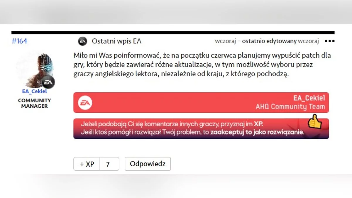 На польском форуме поддержки EA появилось сообщение о скором выходе патча, который исправит проблемы с озвучкой.