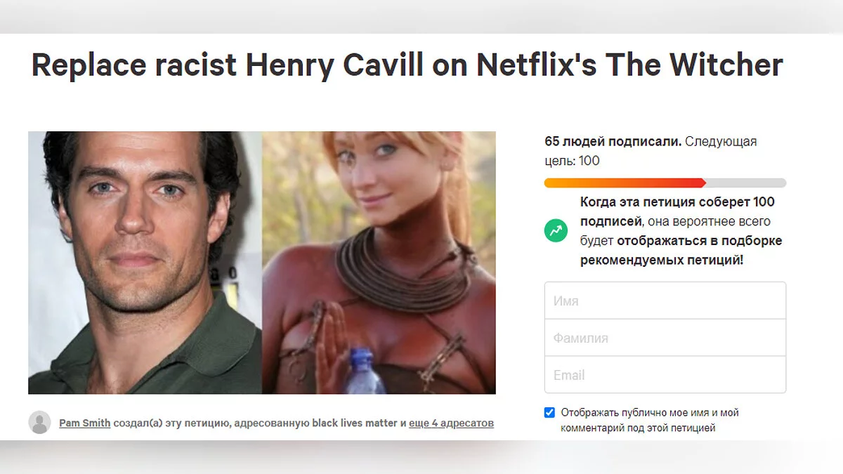 На сайте Change.org создали петицию с просьбой убрать Генри Кавилла (Henry Cavill) из сериала «Ведьмак» от Netflix и заменить его на другого актера. Причиной послужил скандал, развернувшийся вокруг его девушки Натали Вискузо (Natalie Viscuso), которую обвиняют в расизме.