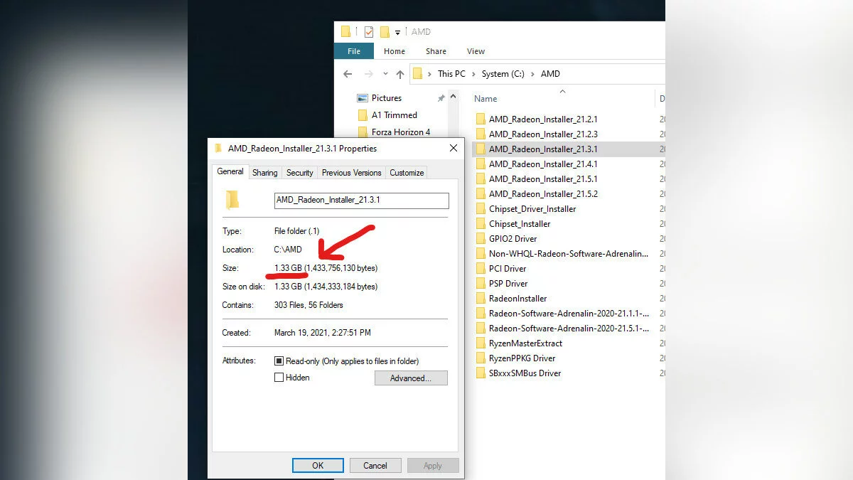 Как отметил пользователь, один такой апдейт занимает примерно 1,3 ГБ, так что на жёстком диске или SSD может накопиться несколько десятков гигабайт незадействованных файлов. Эти данные складируются в папку AMD на системном диске.