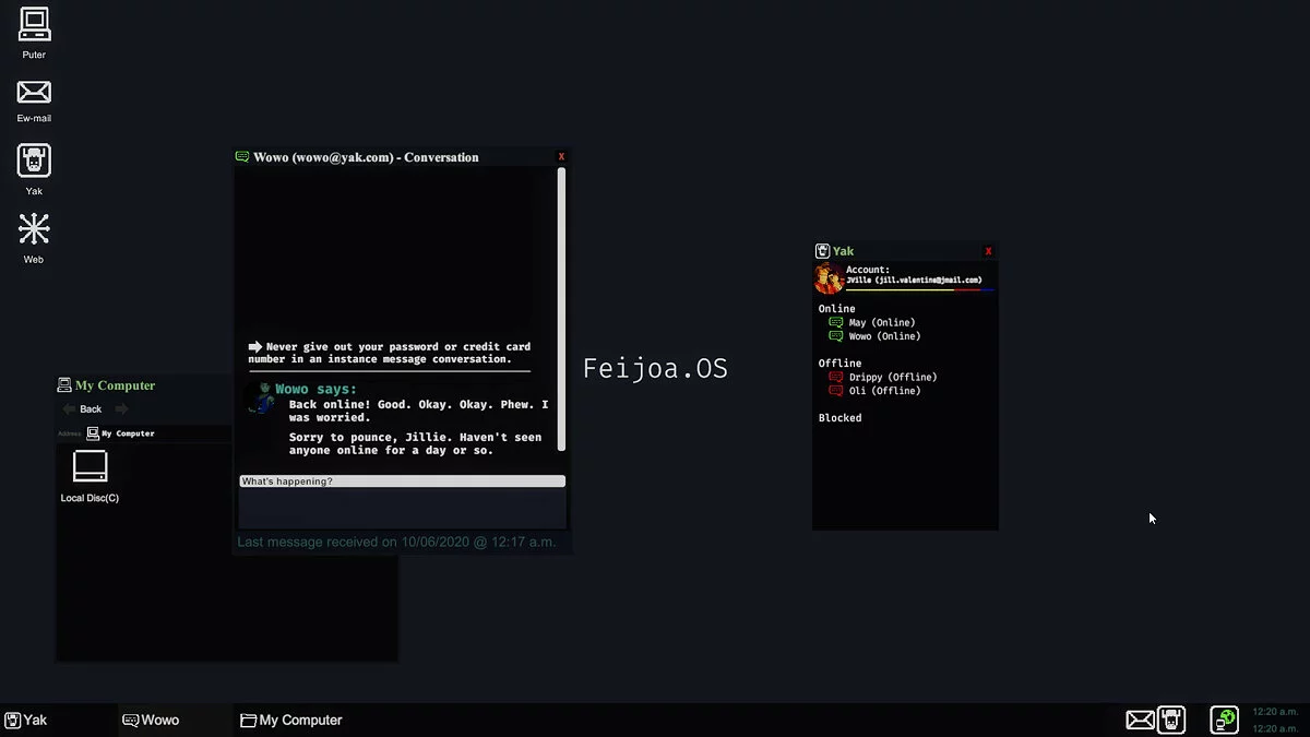 Last Message — триллер, события которого происходят в мире, наполненном заражёнными. Игра расскажет о девушке, которая, вернувшись домой после целого дня поисков припасов, садится за компьютер, чтобы пообщаться с друзьями. Геймплей крайне прост: игрокам предстоит пользоваться компьютером, читать и отправлять сообщения, просматривать веб-сайты, а также исследовать квартиру и общаться с соседями. Страница в Steam.