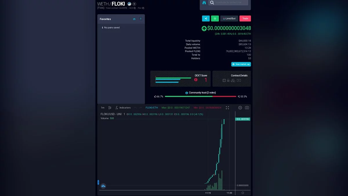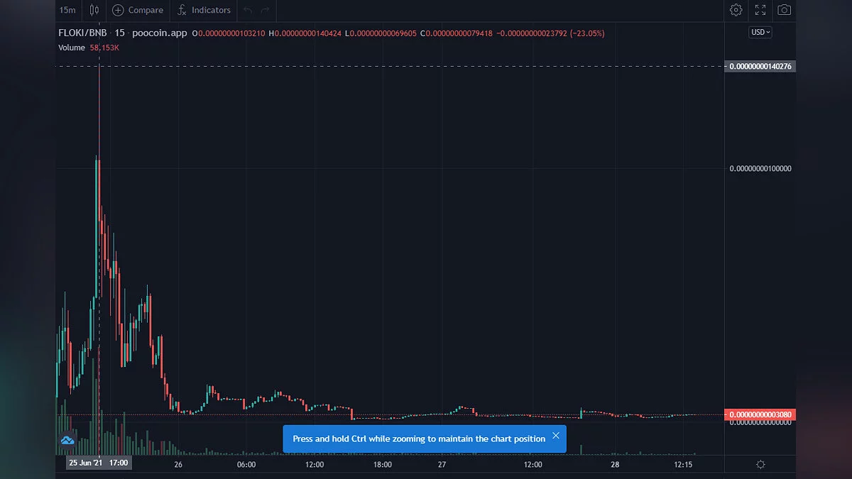 Всего за сутки стоимость токена Floki выросла на 3500%, но затем начала быстро снижаться.