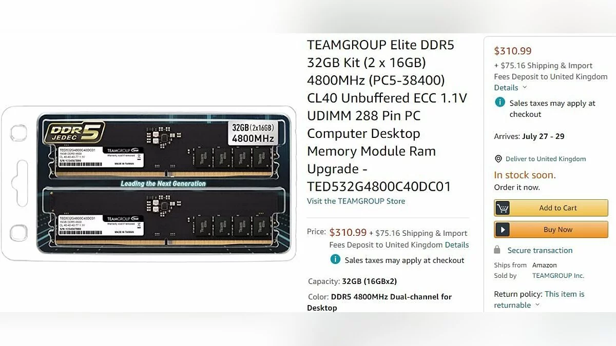 На американских площадках Amazon и Newegg начали принимать предзаказы на первые наборы оперативной памяти DDR5 от компании Team Group.