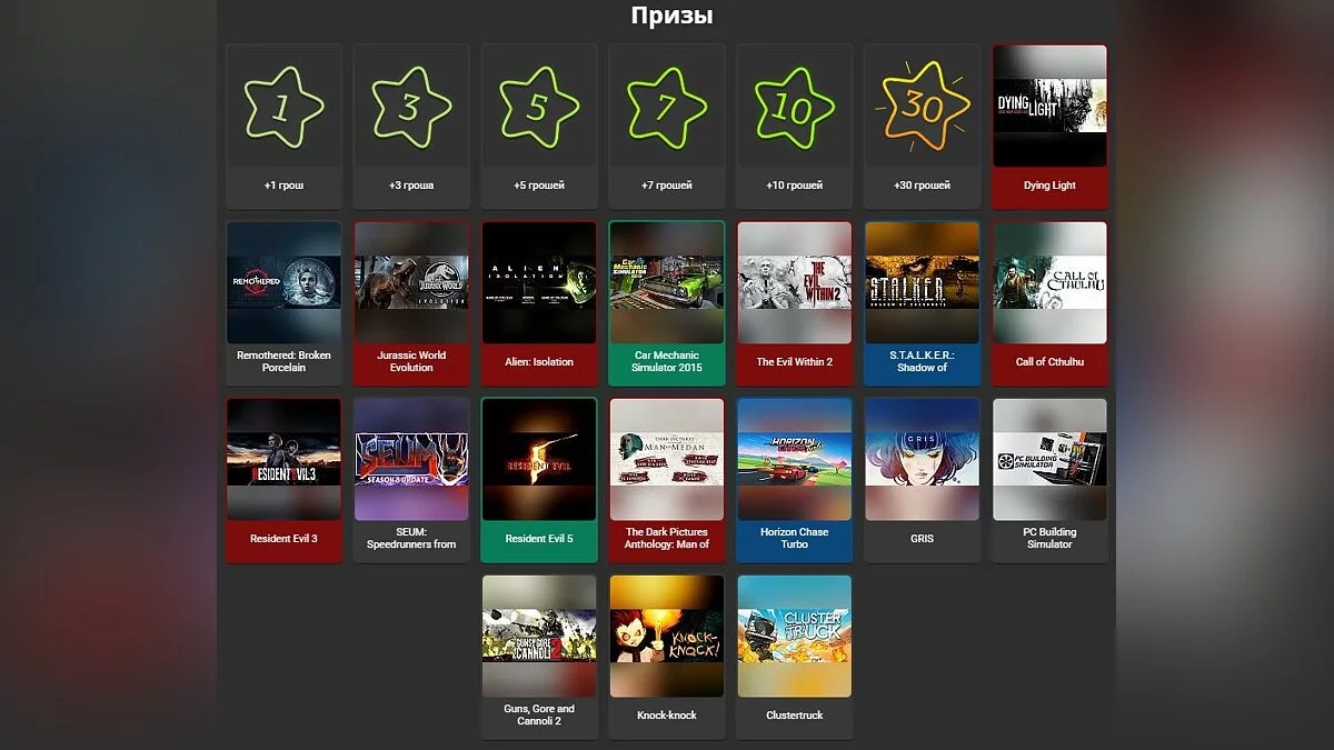 Так выглядит список игр, которые сейчас можно выиграть в нашей рулетке: