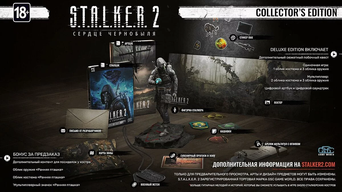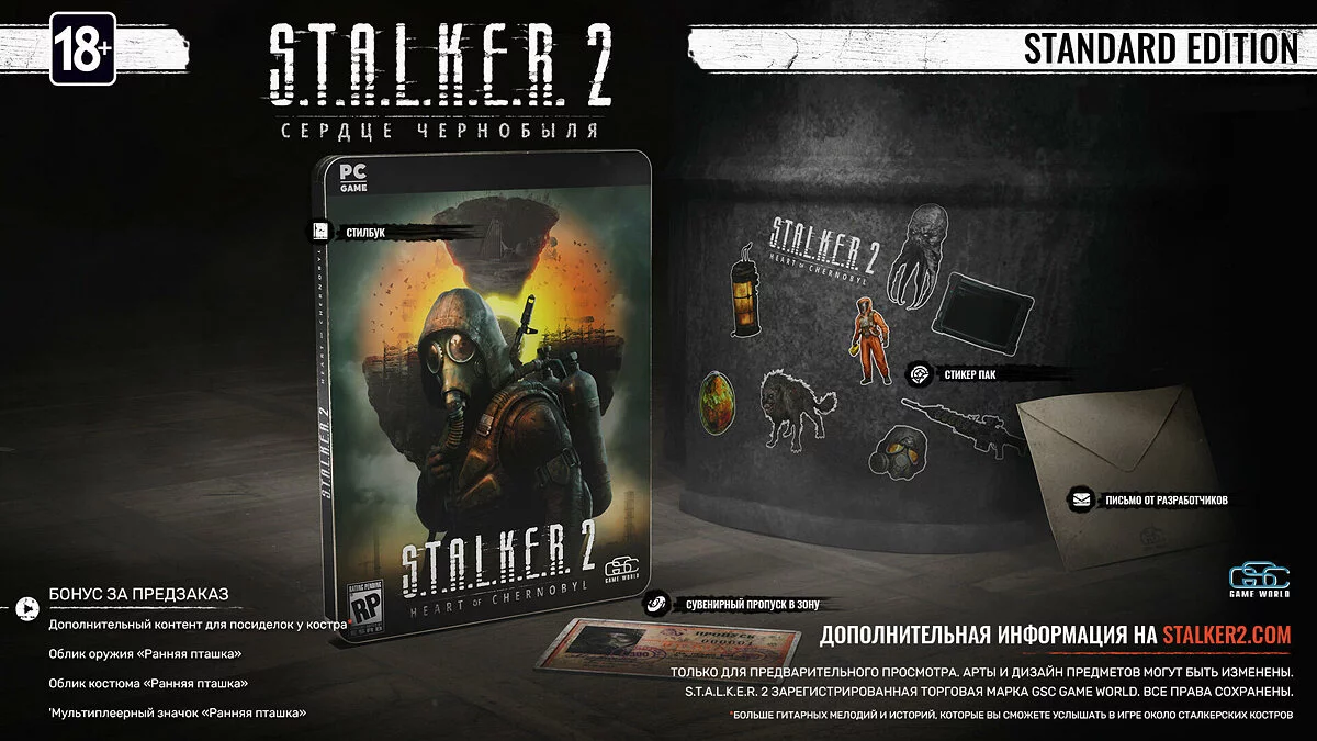 Стандартная версия обойдется в 2 499 рублей. В неё входит код для получения игры, письмо от разработчиков, набор стикеров, стилбук и сувенирный пропуск в Зону. Также обещан дополнительный контент для отдыха у костра, скин оружия и костюма «Ранняя пташка», а также одноимённый значок для мультиплеера.