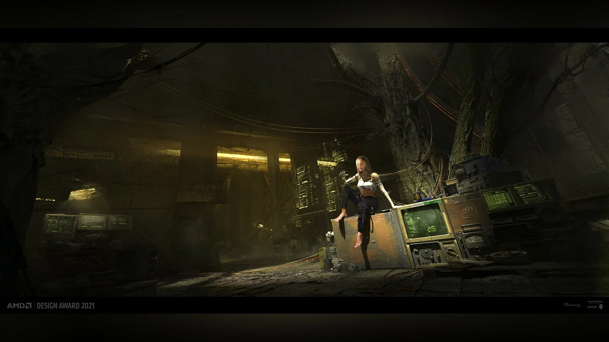 Концепт-дизайнер грядущей S.T.A.L.K.E.R. 2, Алексей Рысюк, представил на ArtStation свою новую работу. На этот раз она выполнена в сеттинге киберпанка. В центе работы — девушка, сидящая в неком заброшенном здании с большим деревом в центре, к которому подключены старые компьютеры.