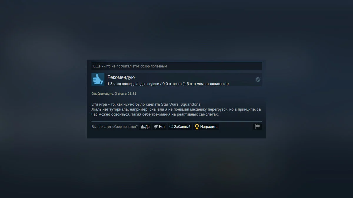 На момент написания заметки Jetborne Racing имеет 96% положительных отзывов. Пользователи Steam хвалят игру за правдоподобное поведение истребителя и затягивающий геймплей.