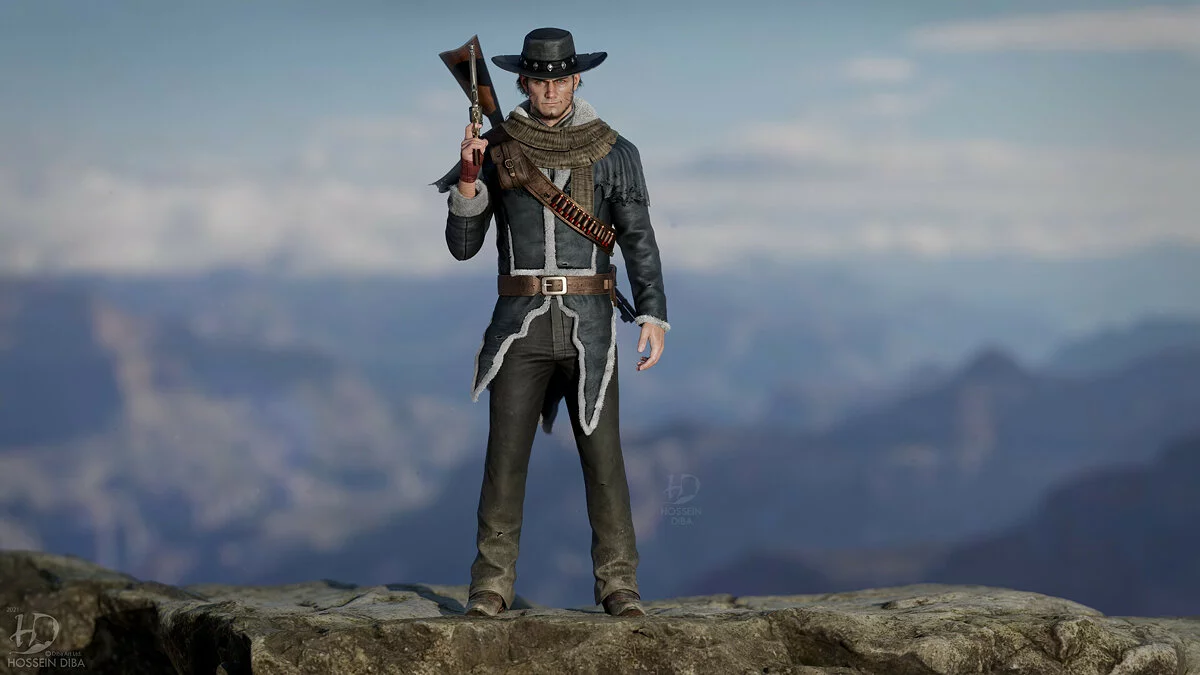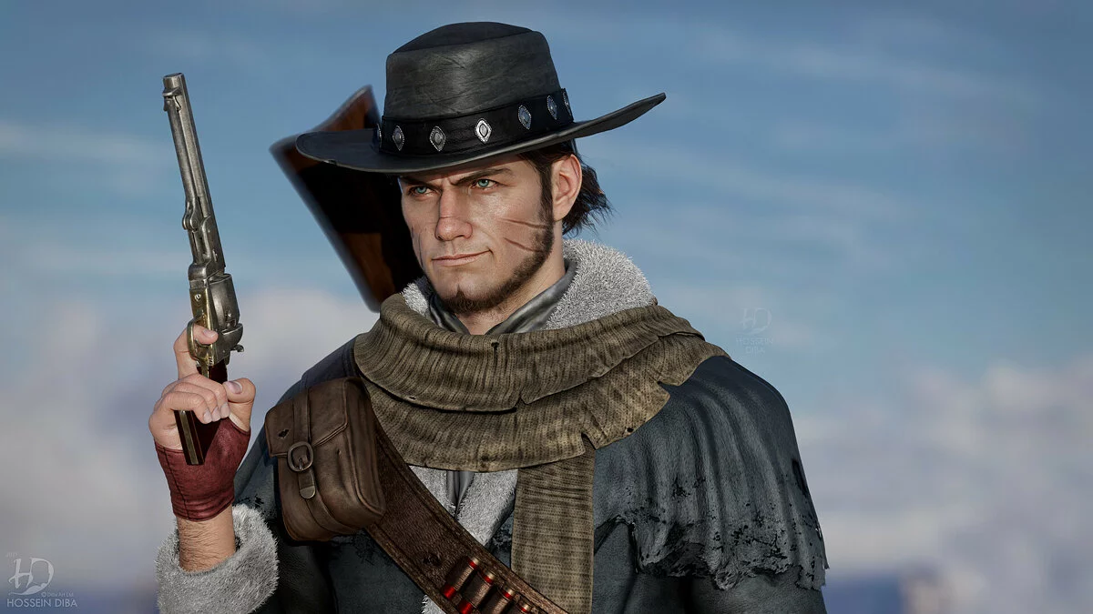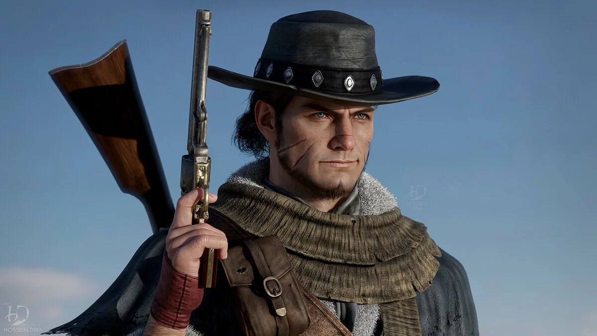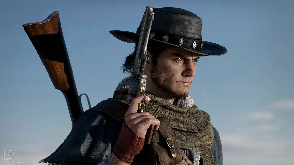 Художник очень тщательно проработал модель персонажа, его зрачки, ресницы, шрамы и морщины на лице. Также он хорошо потрудился над одеждой главного героя и его револьвером. Именно так мог бы выглядеть персонаж, если бы игра получила ремейк для консолей нового поколения PlayStation 5 и Xbox Series X/S.