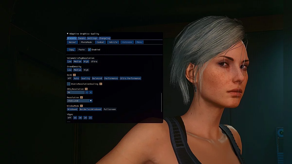 Мод включает 6 различных предустановок графики, которые автоматически переключаются в зависимости от игрового контекста. В списке есть Default, Combat, PhotoMode, Vehicle, Cutscene и Menu. Это позволяет «на лету» менять графические режимы игры. Например, можно включать качество графики по умолчанию при исследовании Найт-Сити или «Боевой режим», чтобы увеличить количество FPS.