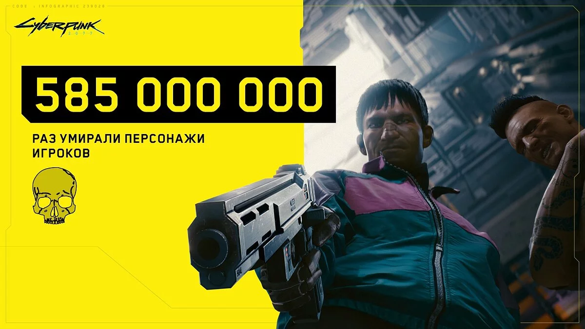 Создатели ролевой игры Cyberpunk 2077 продолжает делиться интересной статистикой своего проекта. На этот раз авторы рассказали, сколько всего раз умирал главный герой в Найт-Сити за семь месяцев с момента релиза игры. По информации от разработчиков, это случилось целых 585 миллионов раз.