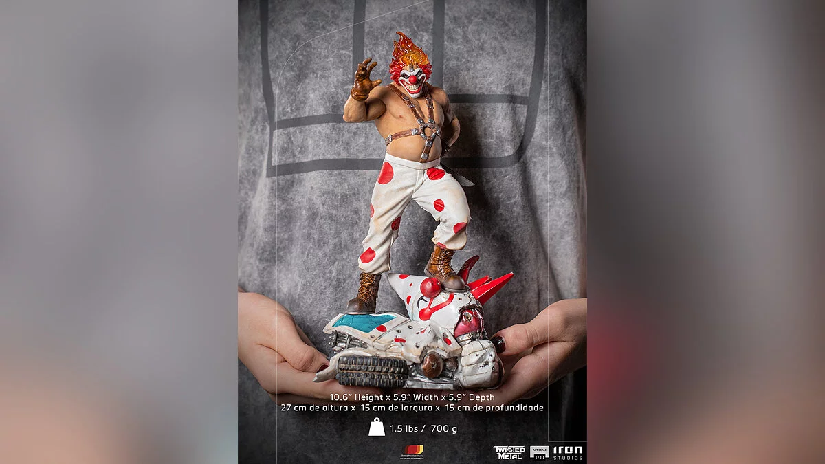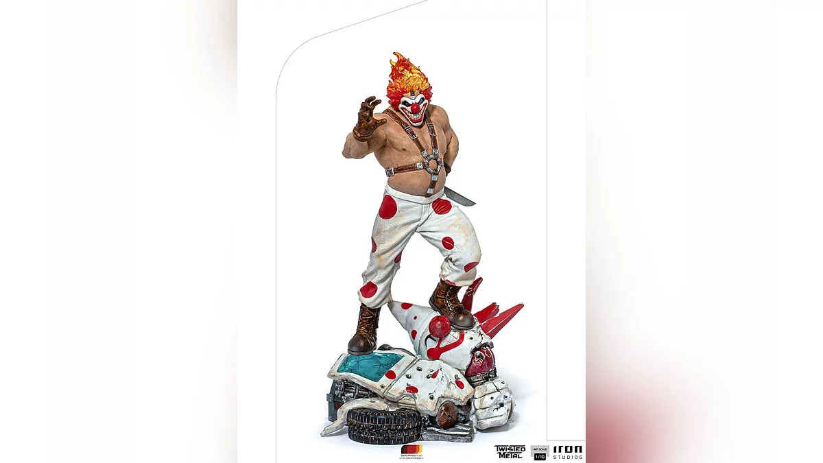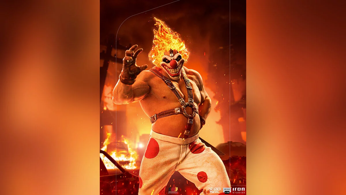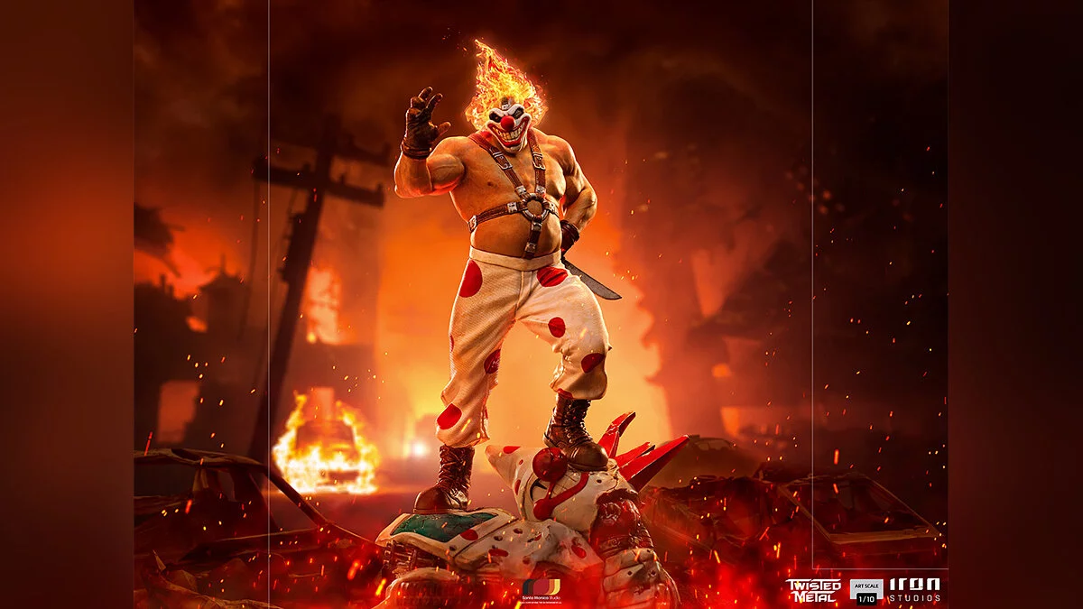 Iron Studios представила коллекционную фигурку Сладкоежки (Sweet Tooth) из серии гоночных экшенов Twisted Metal, которые были особо популярны в эпоху первой PlayStation.
