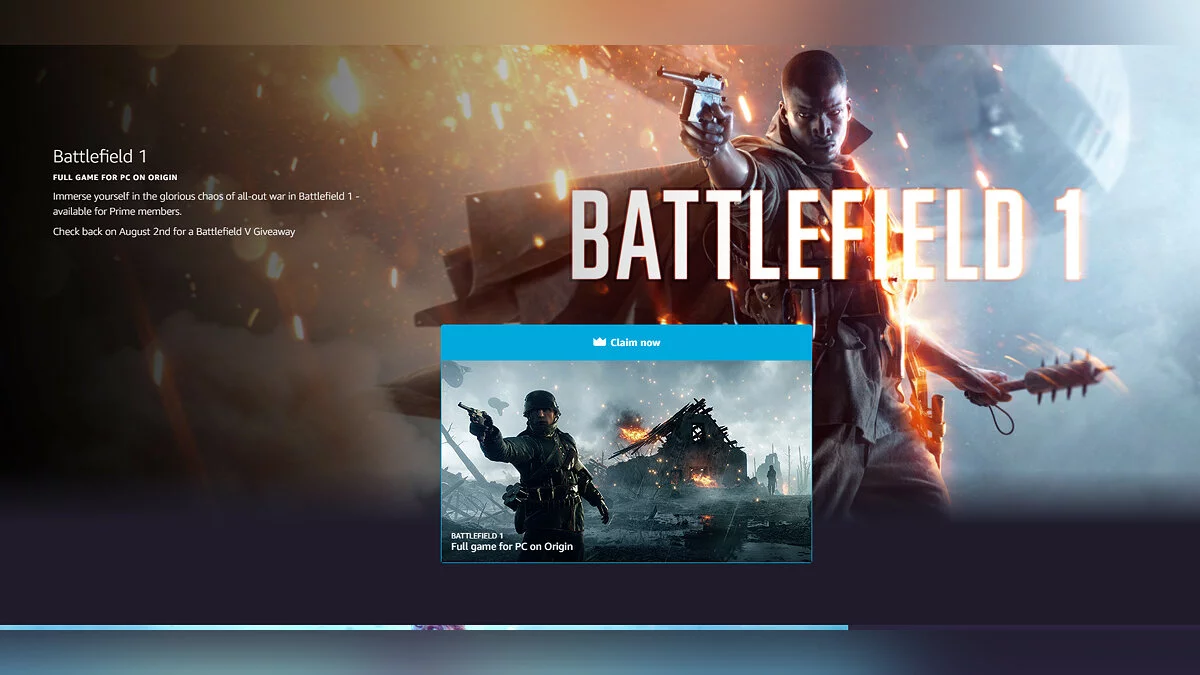 Халява: Amazon бесплатно раздает PC-версию Battlefield 1, а следом подарит Battlefield 5