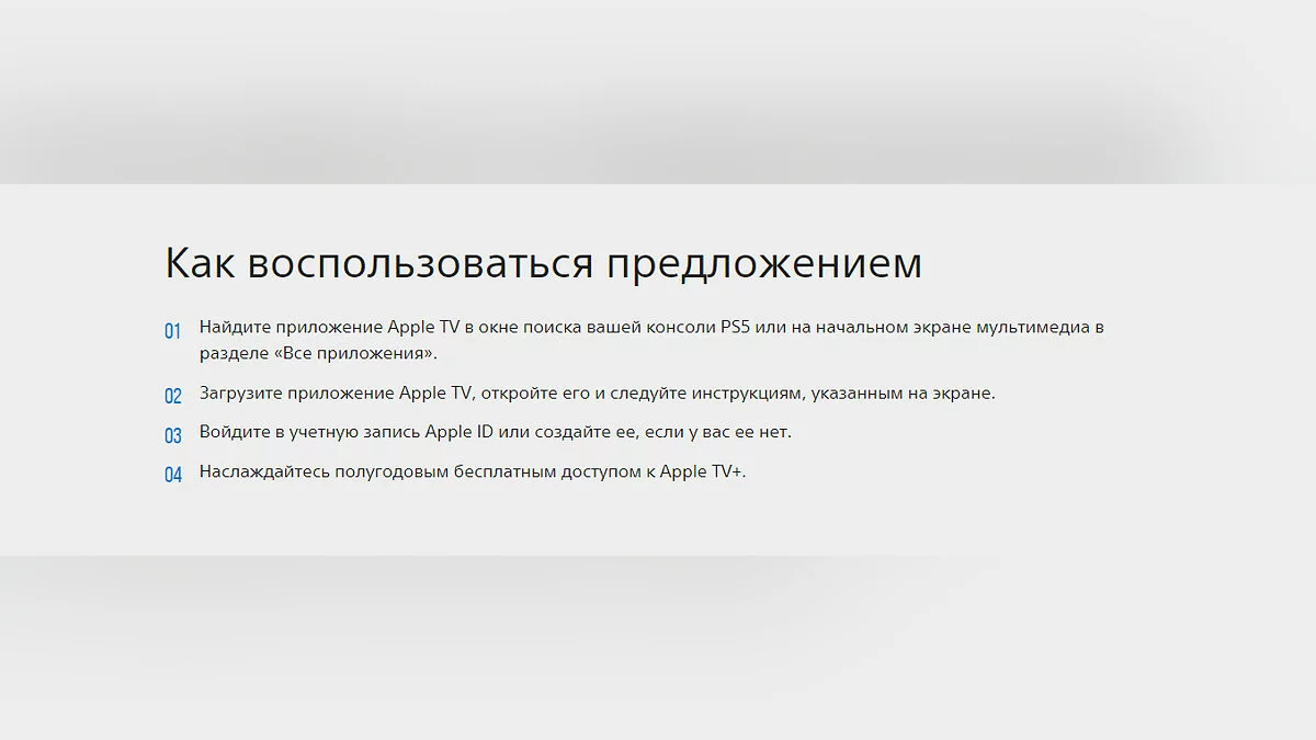 Sony совместно с Apple запустила эксклюзивную акцию для владельцев PlayStation 5, которая позволит забрать полгода подписки Apple TV. Раздача будет длиться целый год — до 22 июля 2022-го.