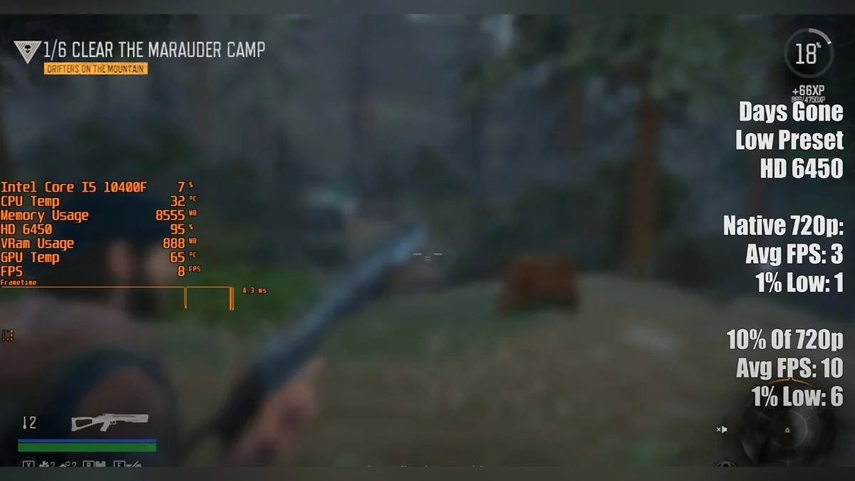 - Days Gone — 3 FPS при 720p и 10 FPS при 72p;