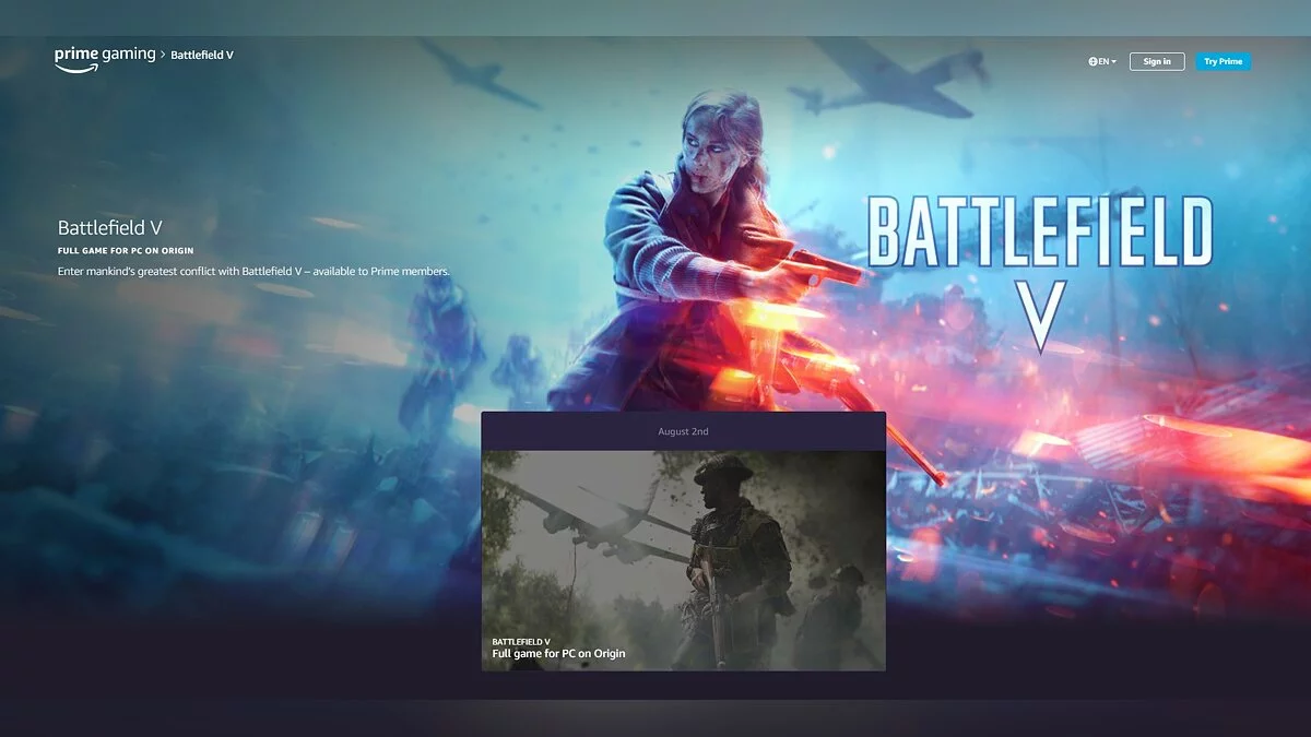Компания Amazon запустила бесплатную раздачу Origin-версии Battlefield 5. Акция доступна только для подписчиков платного сервиса Amazon Prime.