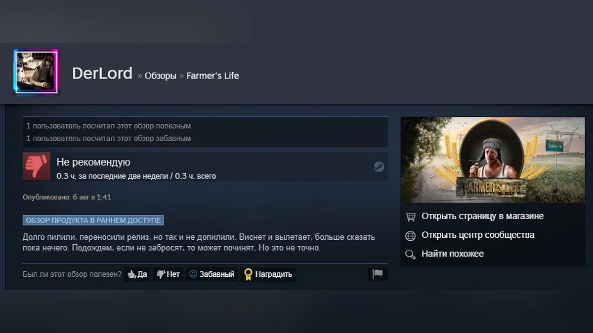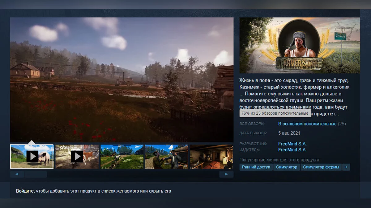 В Steam, на момент написания новости, Farmer's Life имеет 76% положительных отзывов. Некоторые геймеры отмечают, что в игре есть баг с сохранениями.