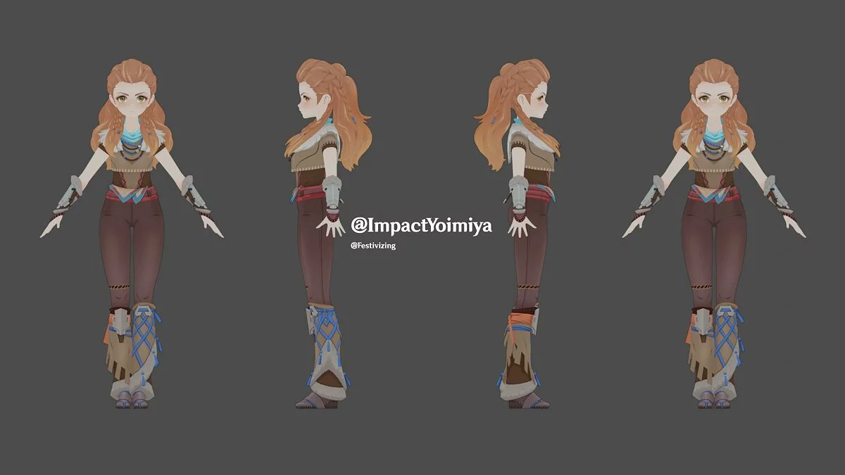 Сейчас проходит закрытое бета-тестирование обновления с четырьмя новыми персонажами для Genshin Impact — Кокоми, Райдэн, Сарой и Элой, главной героиней Horizon Zero Dawn. Один из участников ЗБТ опубликовал в сети изображение, где можно детально рассмотреть модель Элой со всех сторон.