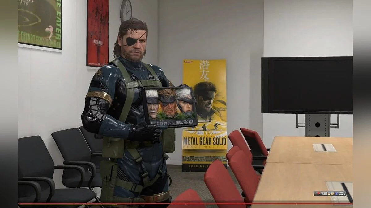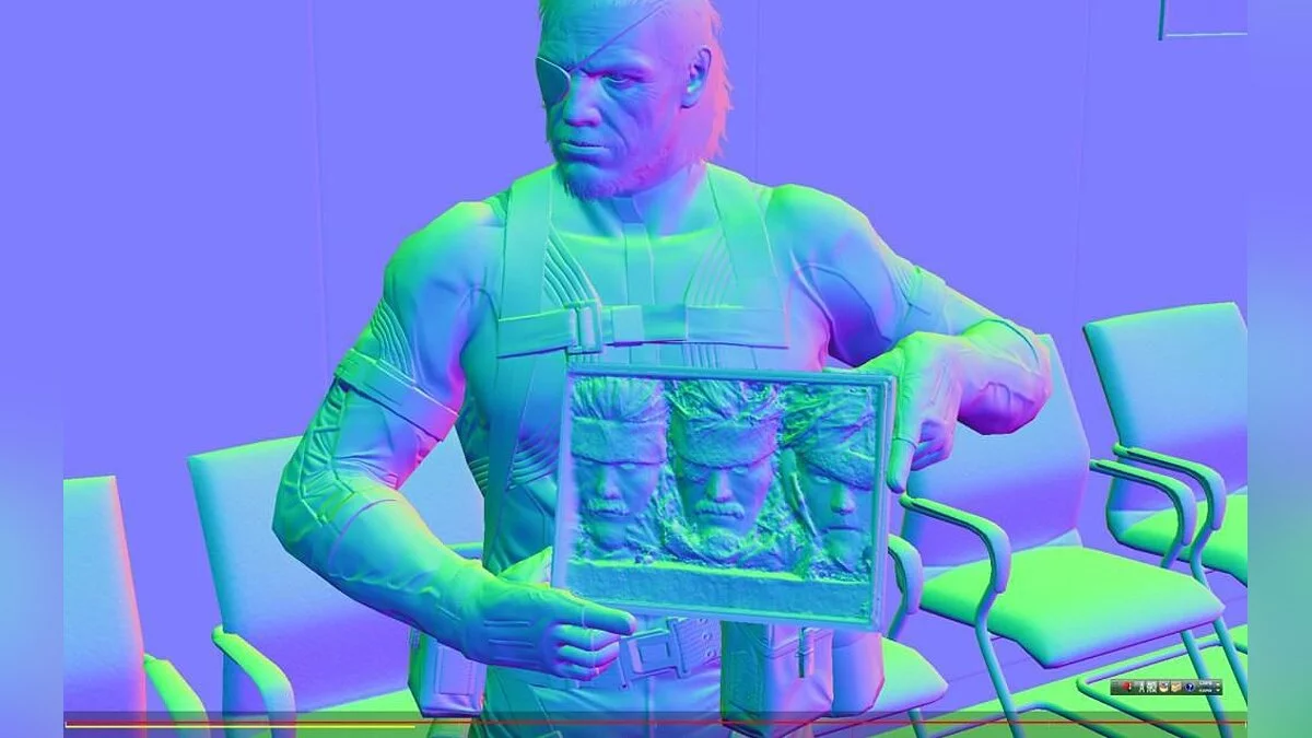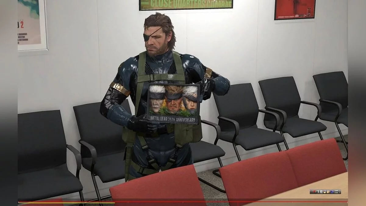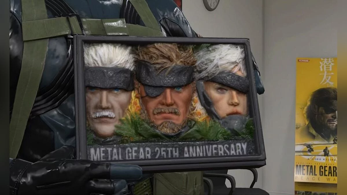 На скриншотах показан Снэйк (Snake), центральный персонаж игры, стоящий посреди офиса студии Kojima Productions, который уже использовался для демонстрации системы освещения игрового движка. Снэйк держит табличку с надписью «25 годовщина MGS» (MGS 25th Anniversary), которую студии Кодзимы-сана подарила компания Sony. На создание изображения с использованием 3D-сканера ушло два часа.