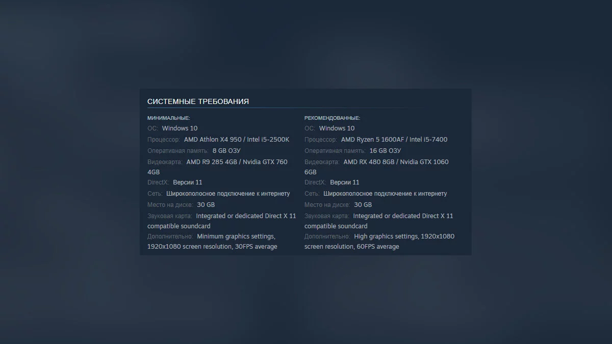 - Видеокарта: AMD RX 480 8 ГБ или NVIDIA GTX 1060 6 ГБ;
