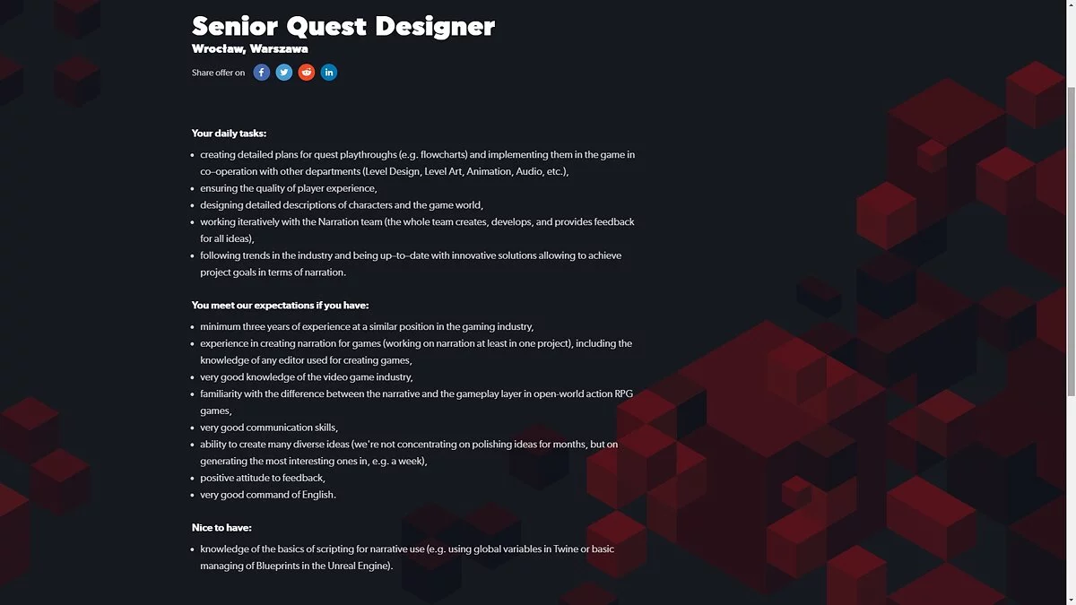 В конце отметим, что Techland ищет ещё одного специалиста, который разбирается в Unreal Engine. Это интересная деталь, потому что предыдущие игры компании были выполнены на собственных движках Chrome и C-Engine.