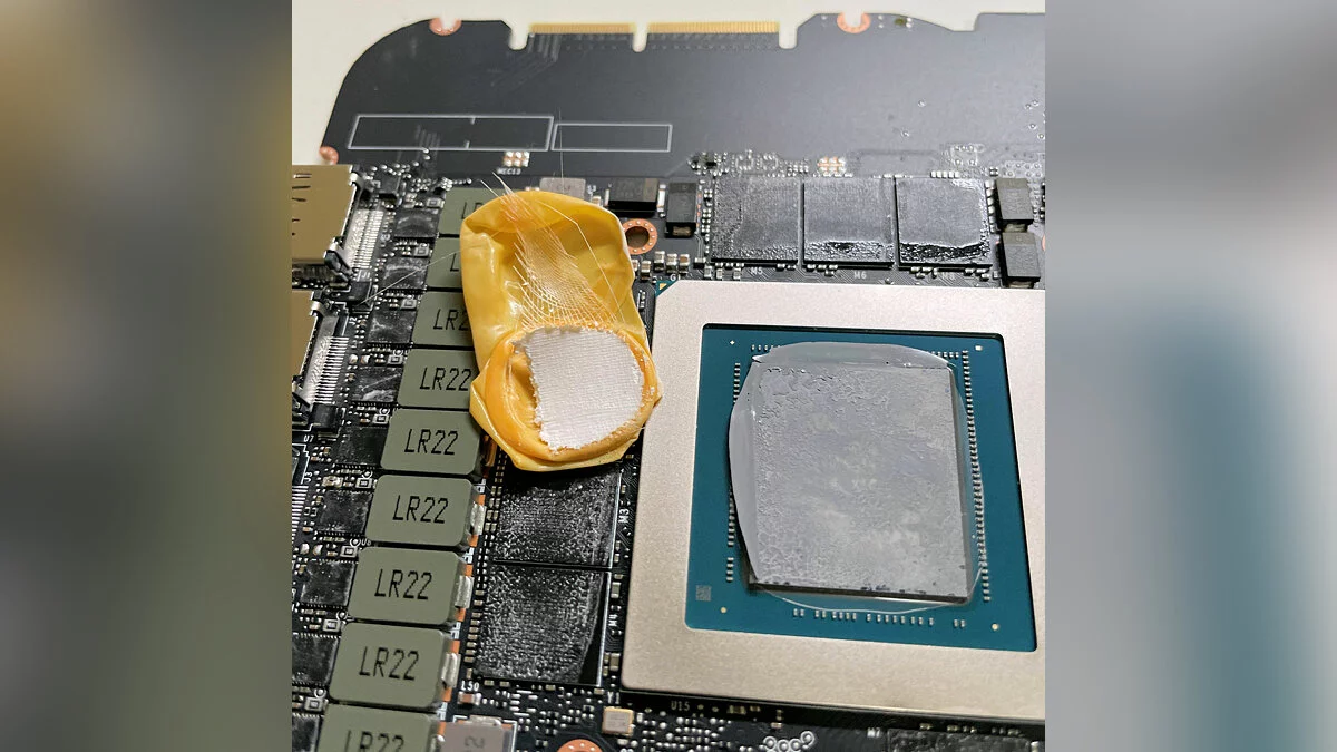 По словам antonyjeweet, до этого графический чип нагревался до 110 градусов при максимальной нагрузке. После замены термопрокладок и удаления напальчника температура упала до 86 градусов.