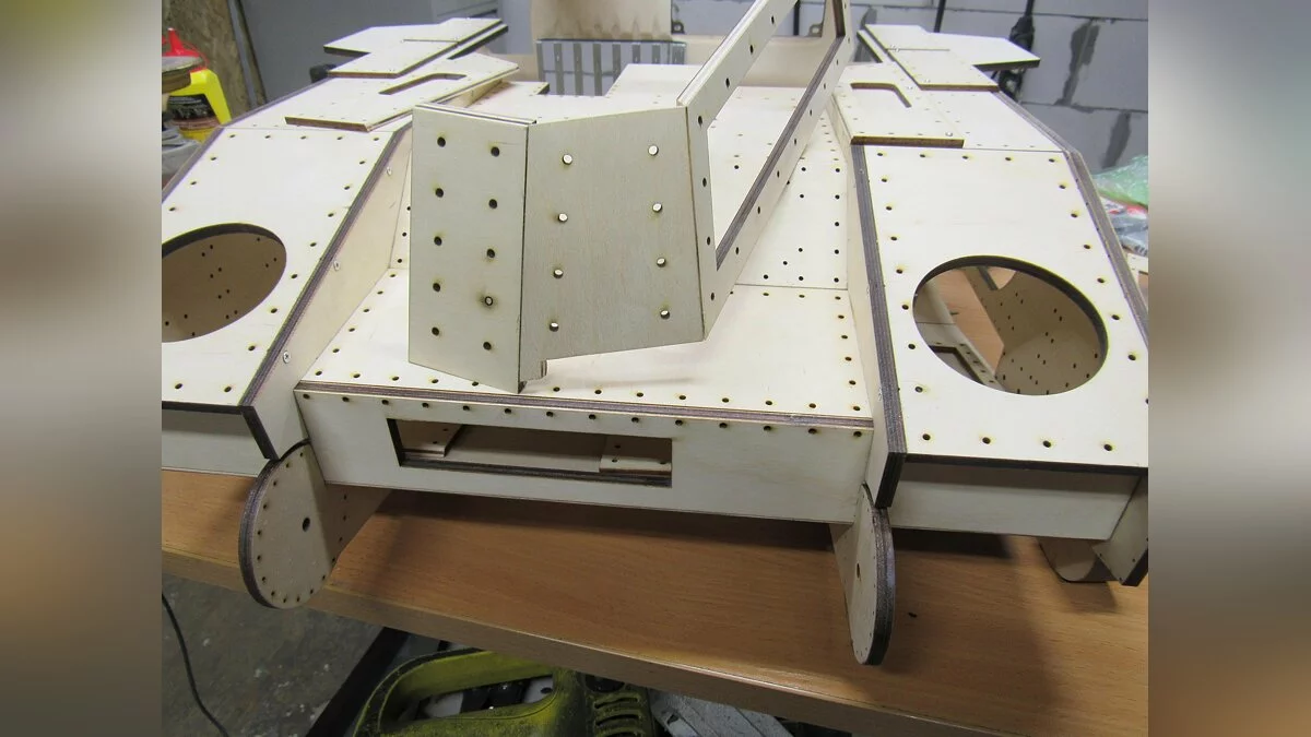 Корпус получил почти настоящее вооружение — плазменная пушка, к примеру, задействует RGB-подсветку. В качестве материала использовалась фанера, а вырезать детали пришлось лазером.