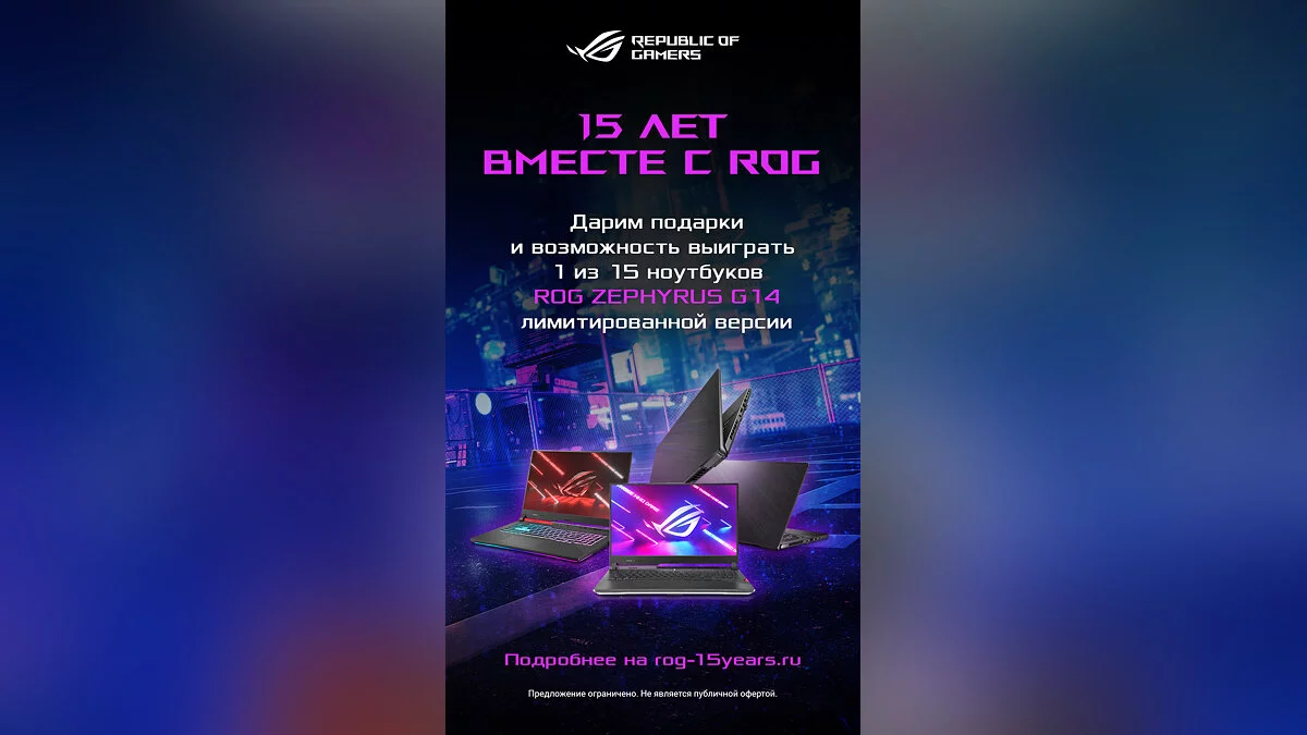Игровой бренд ROG (Republic of Gamers) компании ASUS отмечает своё 15-летие. И к этому событию приурочена новая акция, где можно получить крутые подарки.