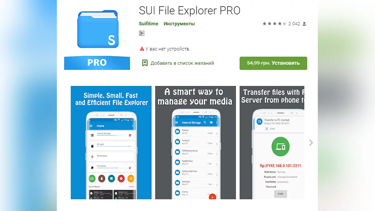 SUI File Explorer PRO — файловый менеджер с возможностью защитить данные паролем (загрузить бесплатно).