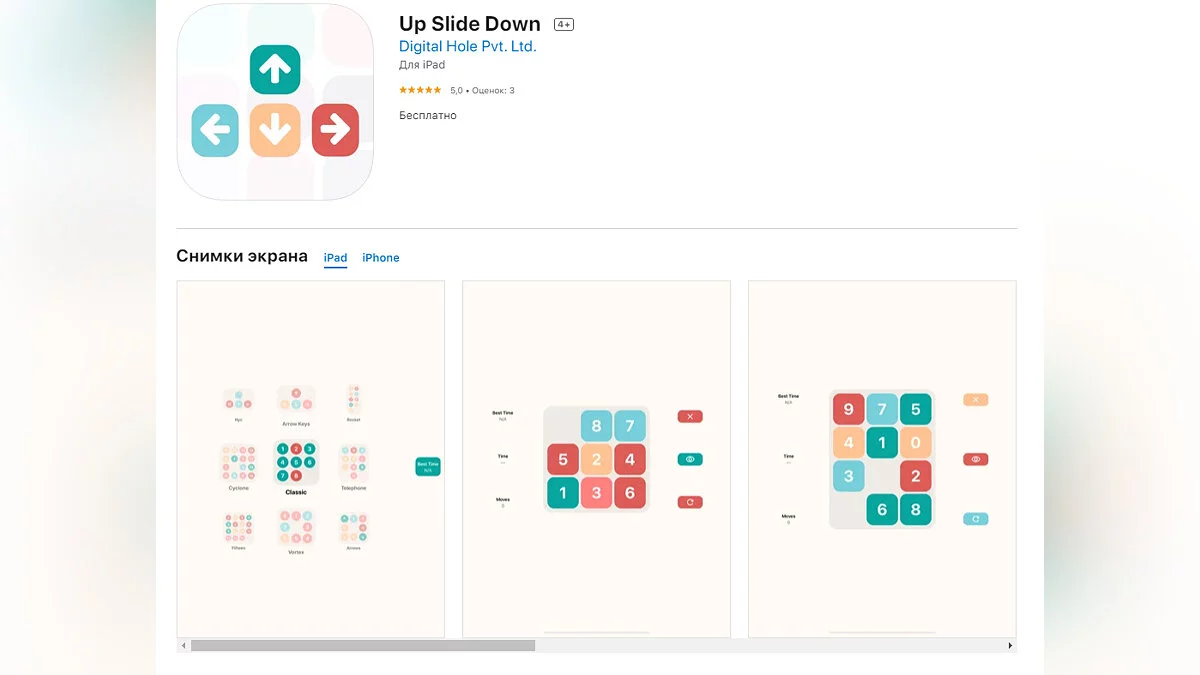- Up Slide Down — головоломка, в которой нужно разместить плитки в правильном порядке (загрузить бесплатно);