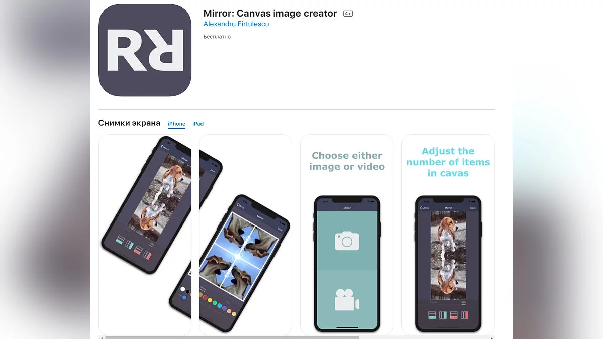 - Mirror: Canvas image creator — приложение, позволяющее добавить зеркальный эффект на снимки и видео (загрузить бесплатно);