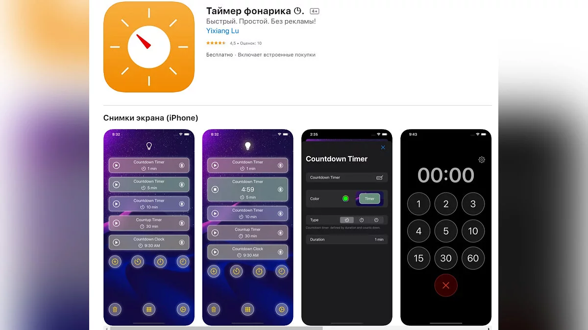 - «Таймер фонарика» — приложение, позволяющее включать фонарик лишь на определенную продолжительность времени (загрузить бесплатно).