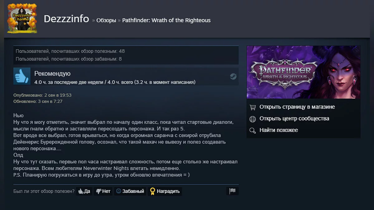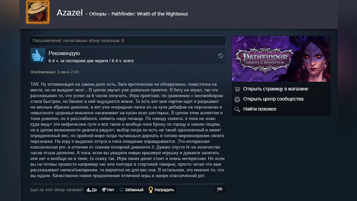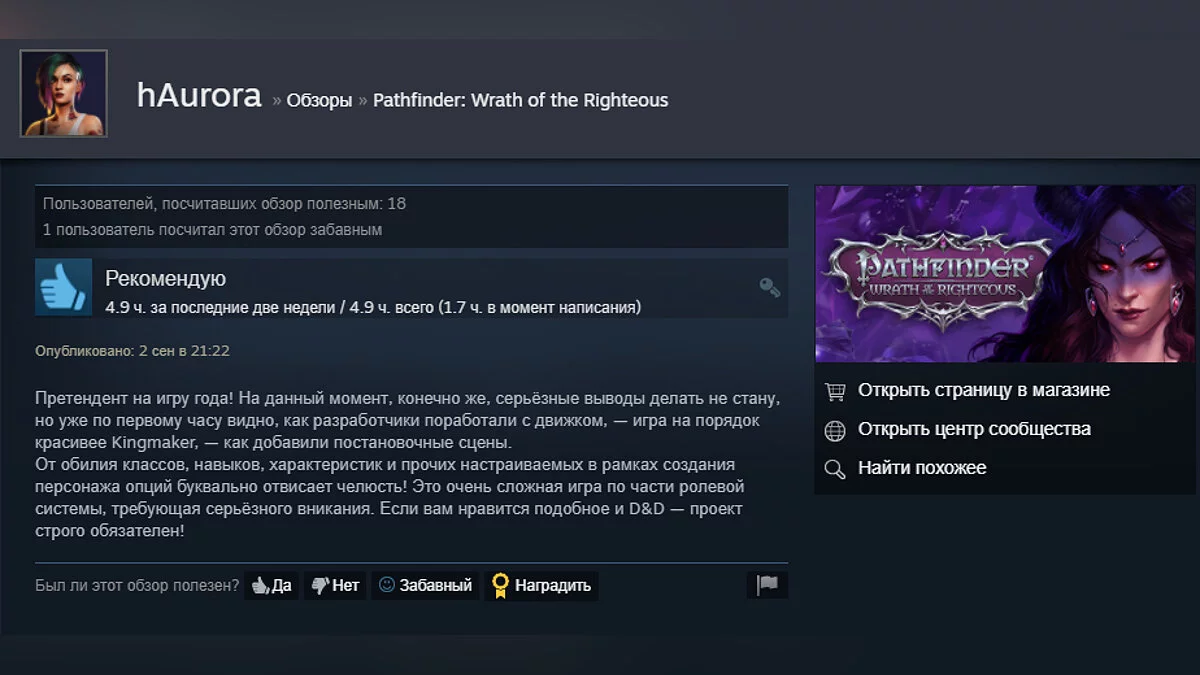 Некоторые геймеры и вовсе называют Pathfinder: Wrath of the Righteous одной из лучших RPG последних лет, и сравнивают ее с культовой Neverwinter Nights.