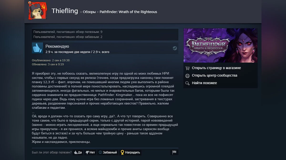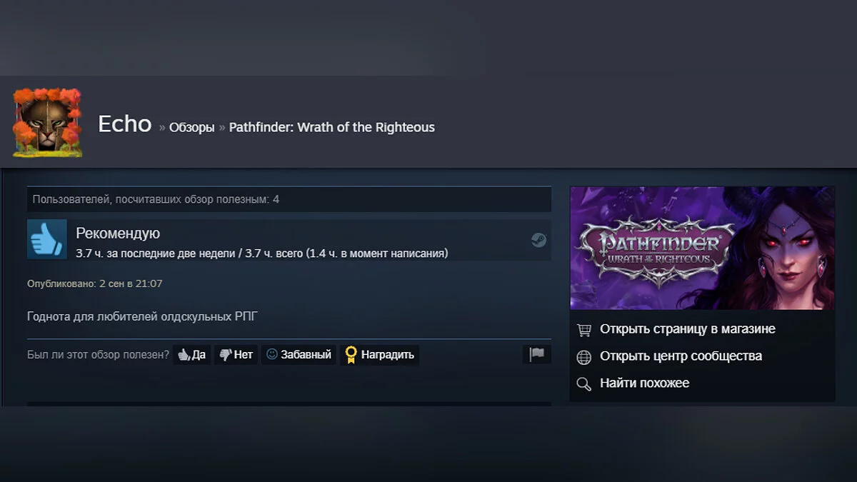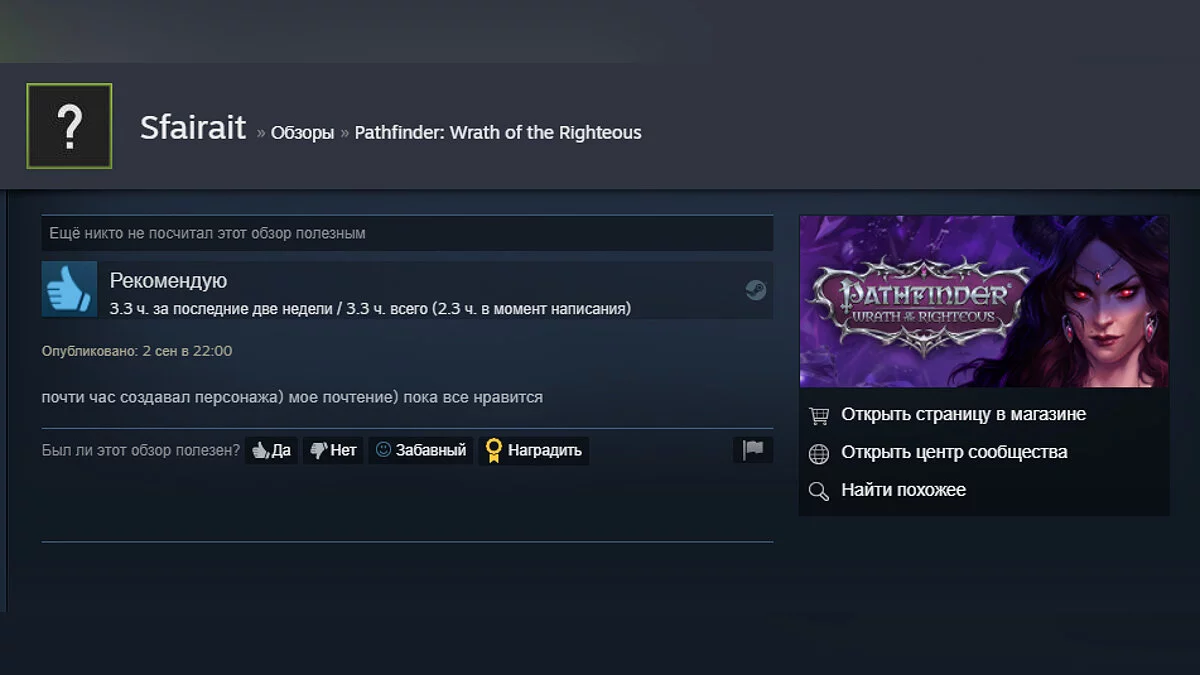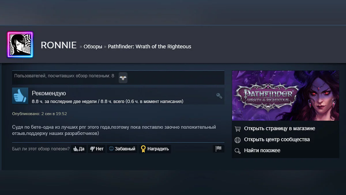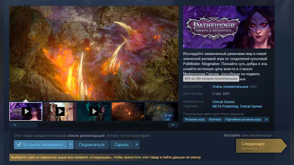 Вчера на PC вышла фэнтезийная изометрическая RPG под названием Pathfinder: Wrath of the Righteous, которую разработала московская студия Owlcat Games. За сутки игра получила в Steam почти 400 отзывов, 88% из которых, на момент написания новости, оказались положительными.