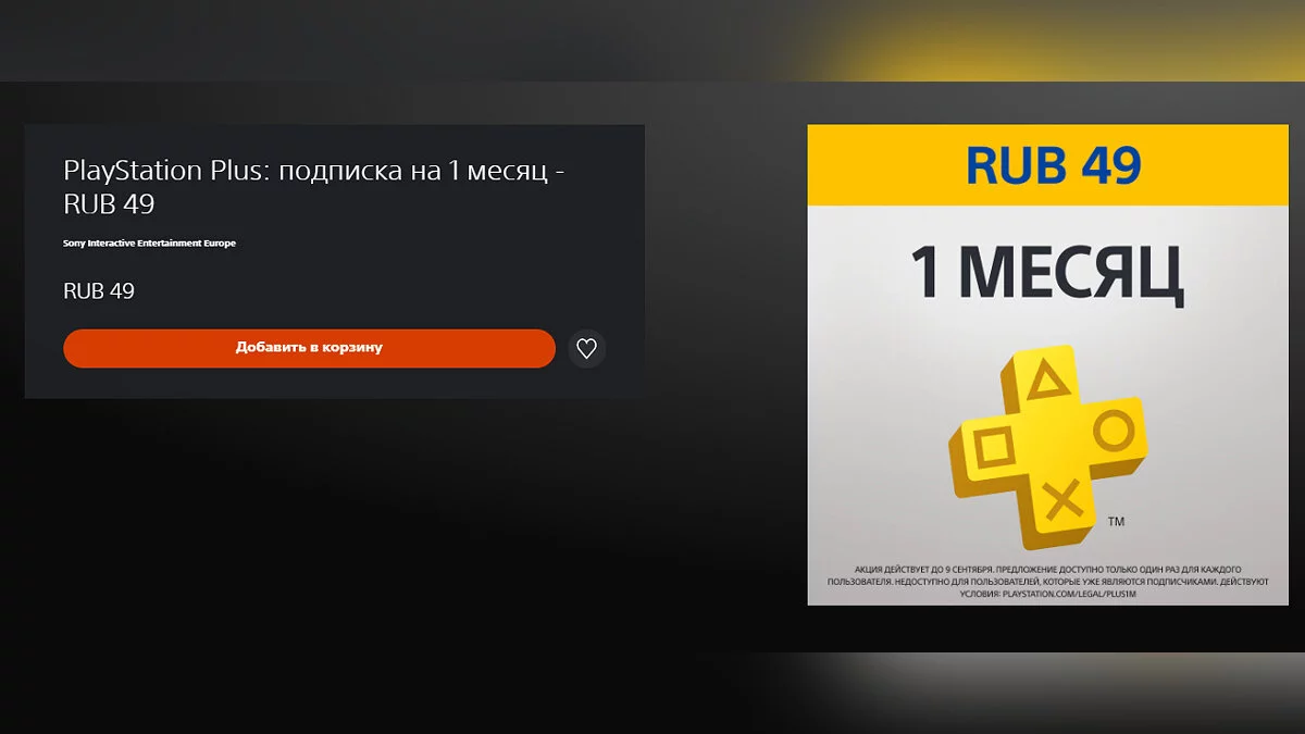 Вместо 529 рублей месяц подписки PS Plus отдают всего за 49 рублей. Акция действует до 10 сентября (14:00 МСК).