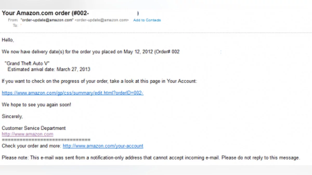 Однако лист предзаказа GTA 5 получил дату релиза 26 марта 2013 года. Все люди, которые уже оформили предзаказ на игру получили уведомление, касающееся даты выхода. Ниже можете посмотреть на скриншот одного из таких писем (не удивляйтесь дате 27 марта, у получателя письма другой часовой пояс).