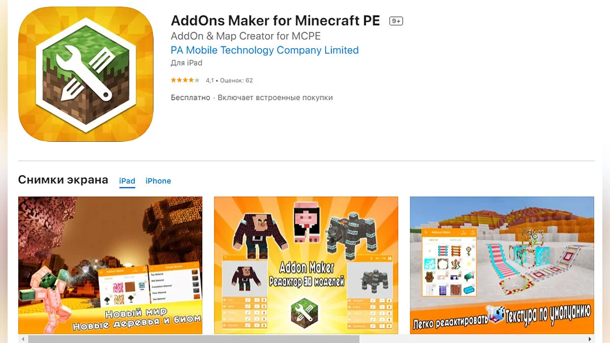 - AddOns Maker for Minecraft PE — приложение для созданния Minecraft-аддонов (загрузить бесплатно);