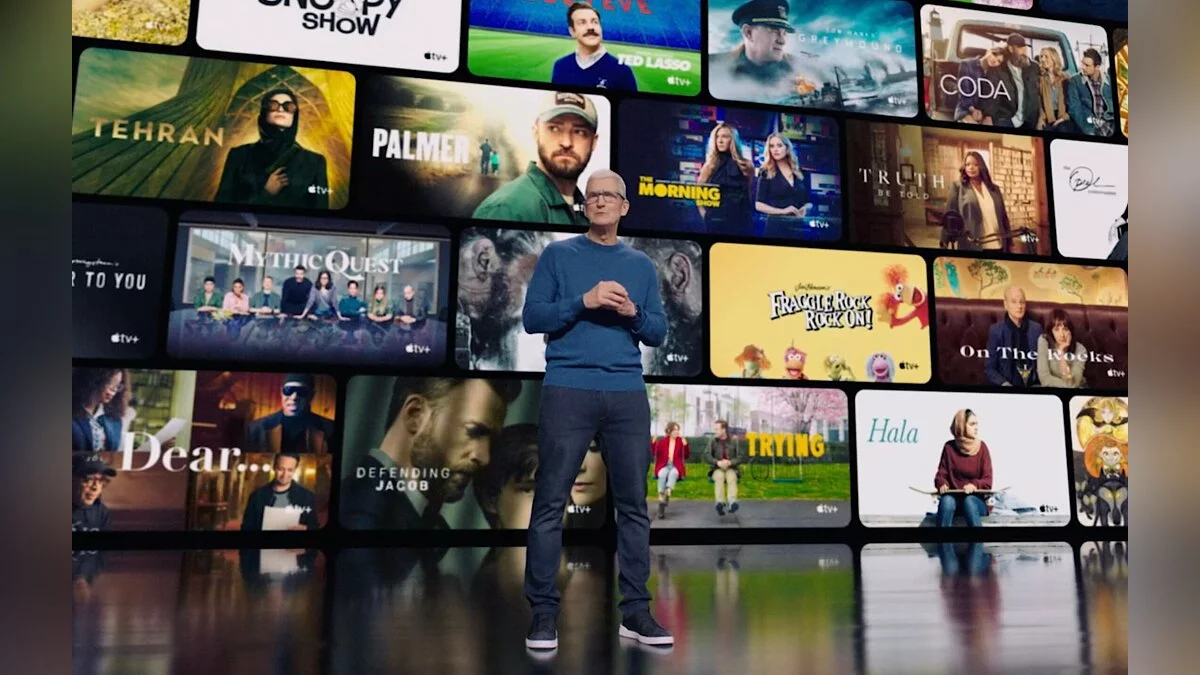 Выступает гендиректор компании Тим Кук, рассказывает об AppleTV+, о том, насколько это крутой сервис. Также он отметил сериал «Тед Лассо».