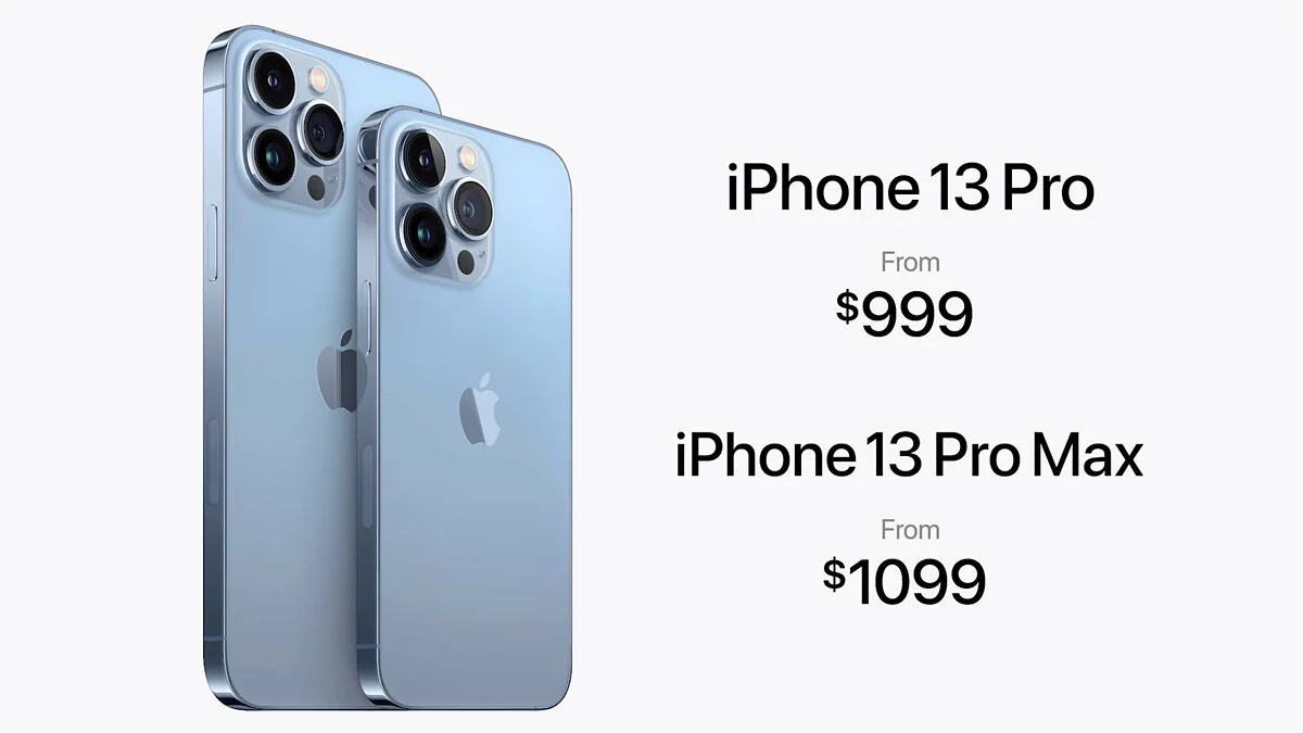 iPhone 13 Pro и Pro Max — это категория уже повыше. 3 камеры и 4 цвета, причём есть новый — небесно-голубой (Sierra Blue).