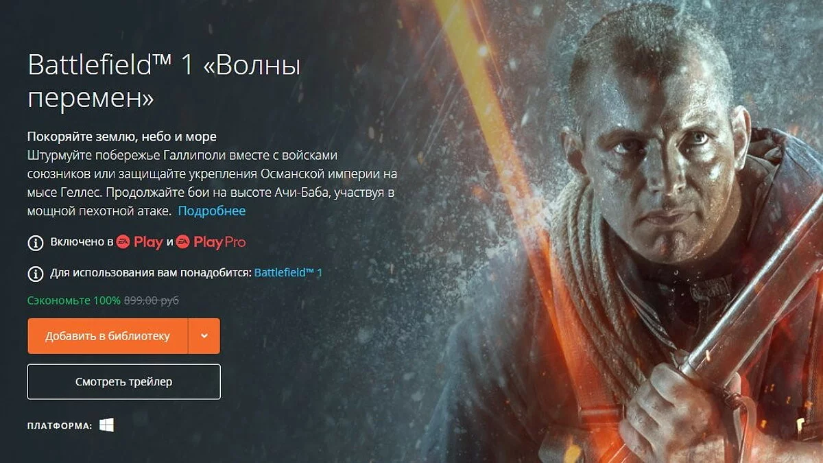 Халява: на ПК бесплатно раздают DLC для Battlefield 1 и Battlefield 4, которые вместе стоят 1700 рублей