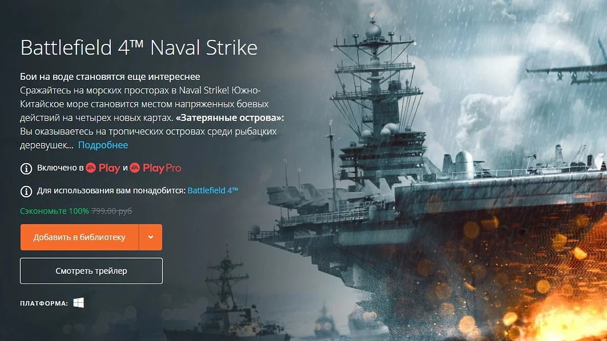 В магазине Origin стартовала раздача DLC для двух частей Battlefield. Сейчас игроки могу бесплатно получить дополнения Turning Tides для Battlefield 1 и Naval Strike для Battlefield 4.