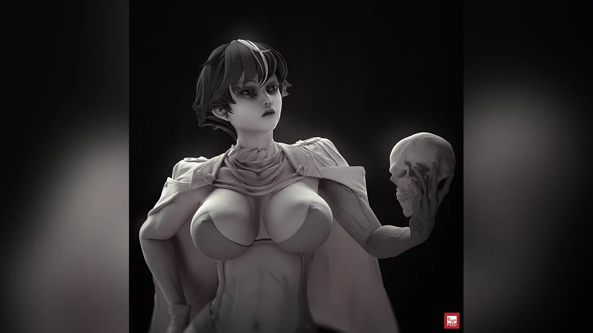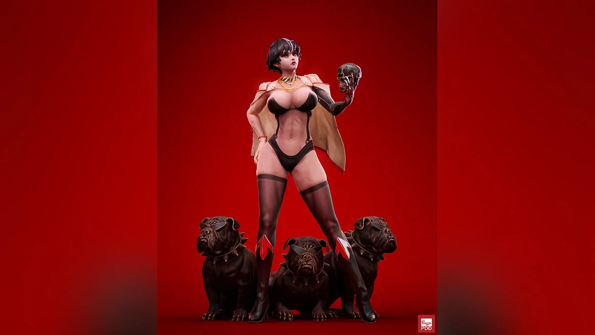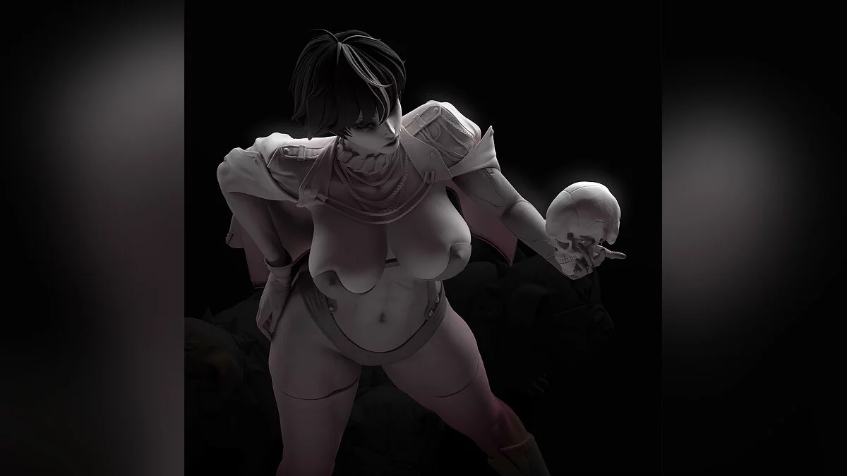 Ранее художник продемонстрировал изображения трёхмерных моделей актрисы Элайши, кошкодевочки Тарон, принцессы Совы и Охотницы.