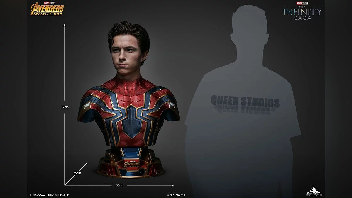 Компания Queen Studios анонсировала полноразмерный бюст Тома Холланда в костюме Человека-паука из последних «Мстителей». Реплика впечатляет не только габаритами (высота: 72 см, длина: 35 см, ширина: 50 см), но и ценником в $3680 (269 тысяч рублей).