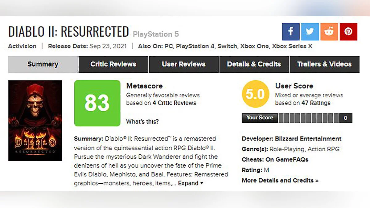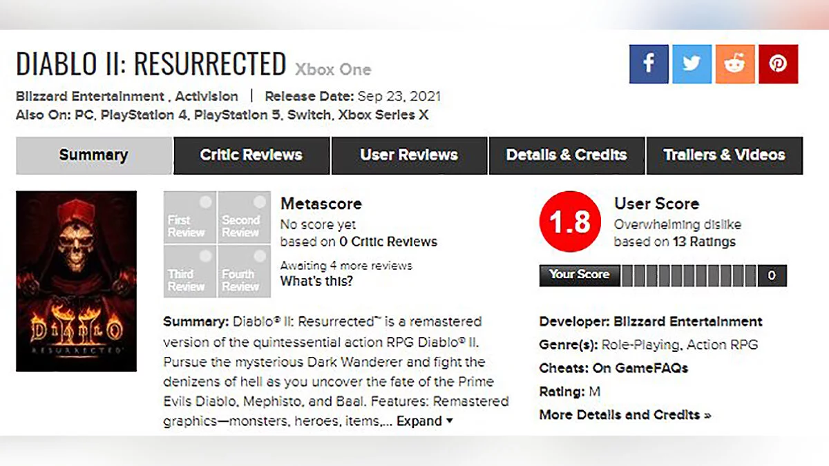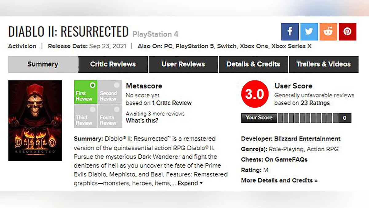 На днях состоялся релиз Diablo 2: Resurrected на PC и всех актуальных консолях. Хотя критикам игра понравилась, геймеры оказались не в восторге от новинки.