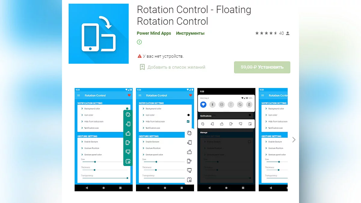- Rotation Control — Floating Rotation Control — приложение, которое расширяет возможности поворота экрана на вашем мобильном устройстве (загрузить бесплатно);