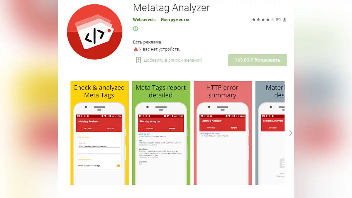- Metatag Analyzer — SEO-инструмент для веб-мастеров, который помогает проводить анализ мета-тегов для сайта (загрузить бесплатно);