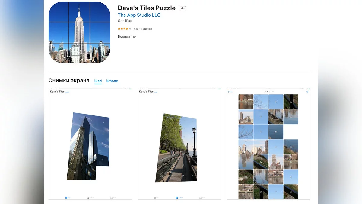 - Dave's Tiles Puzzle — пазл, в котором вы должны собирать из плиточек цельные изображения (загрузить бесплатно);