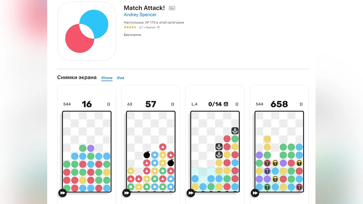 - Match Attack! — головоломка, в которой нужно искать совпадения (загрузить бесплатно);