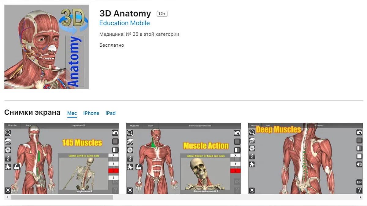 - 3D Anatomy — приложение для изучения анатомии человека (загрузить бесплатно);