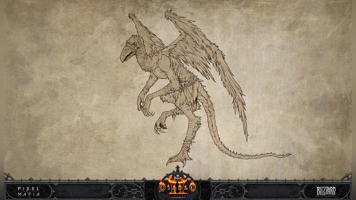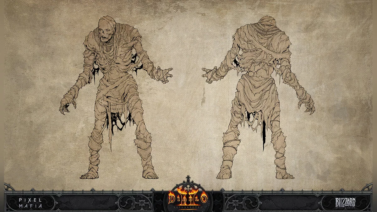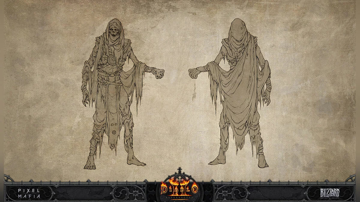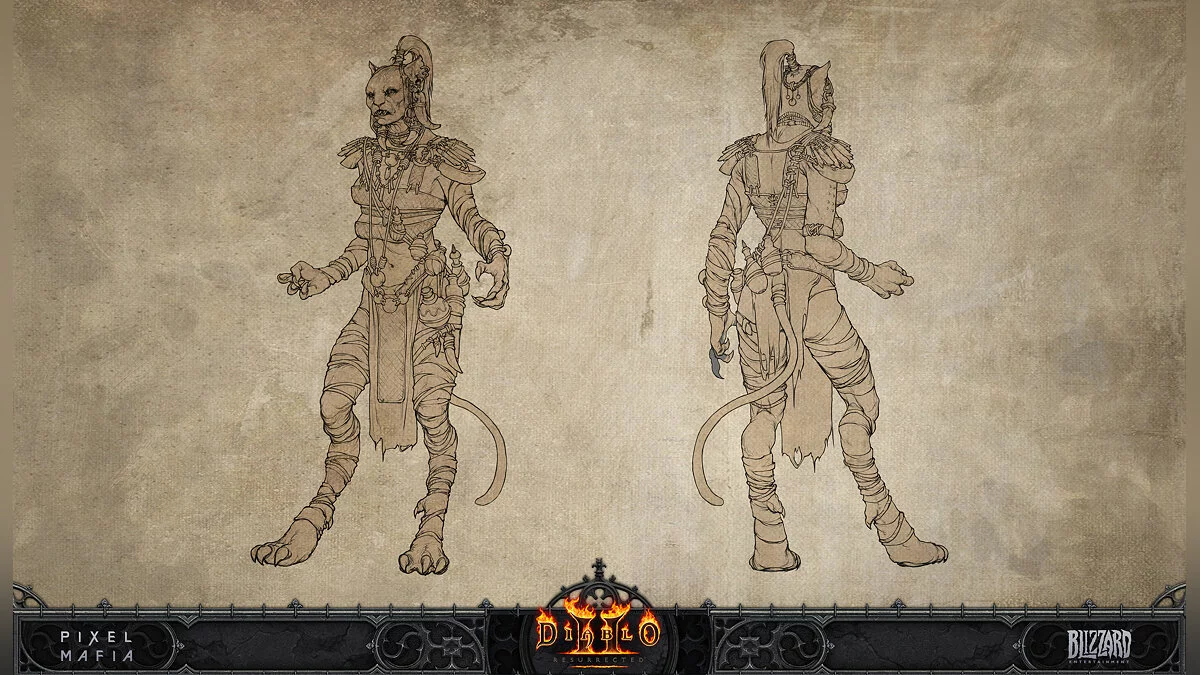 Все арты были созданы художниками из аутсорс-студии Pixel Mafia, которая помогала Blizzard с разработкой проекта. Помимо Diablo 2: Resurrected, студия принимали участие в создании Gears 5, Cyberpunk 2077 и Godfall.