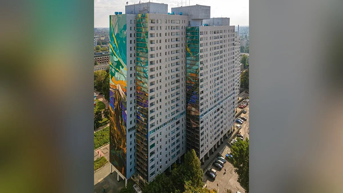 В польском городе Лодзь почти закончили работать над крупнейшей фреской в стране. 26-этажное здание украшает один из самых известных персонажей — ведьмак Геральт из Ривии.