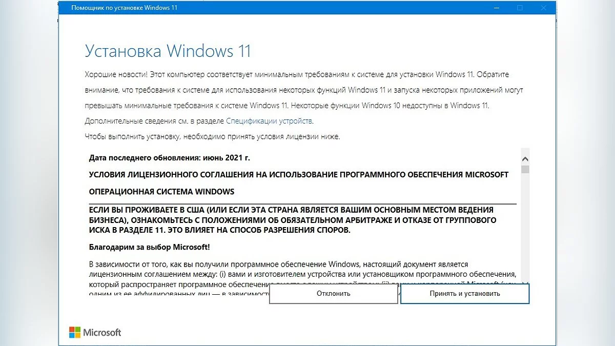 После этого Windows 11 Installation Assistant запускается и уже не проверяет аппаратную совместимость компьютера. Хотя, разумеется, возможны проблемы или дополнительные проверки на более поздних этапах.